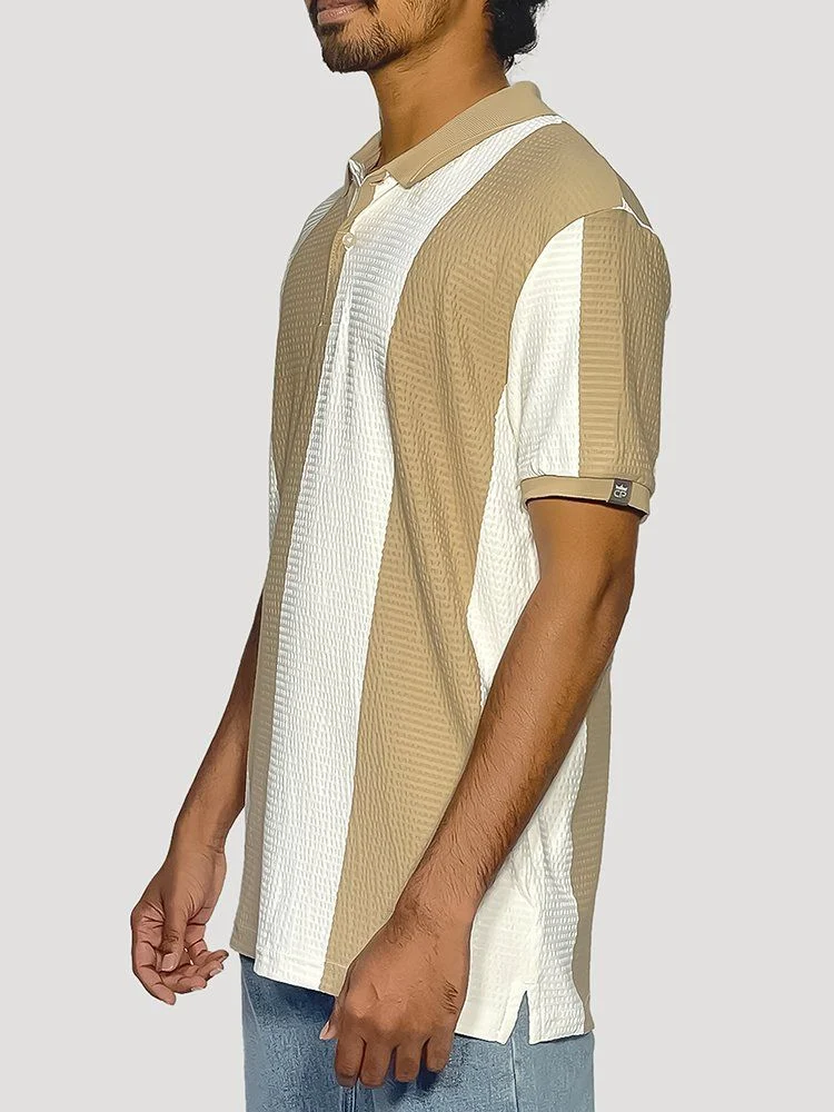 Beige & White Striped Polo T Shirt – 102
