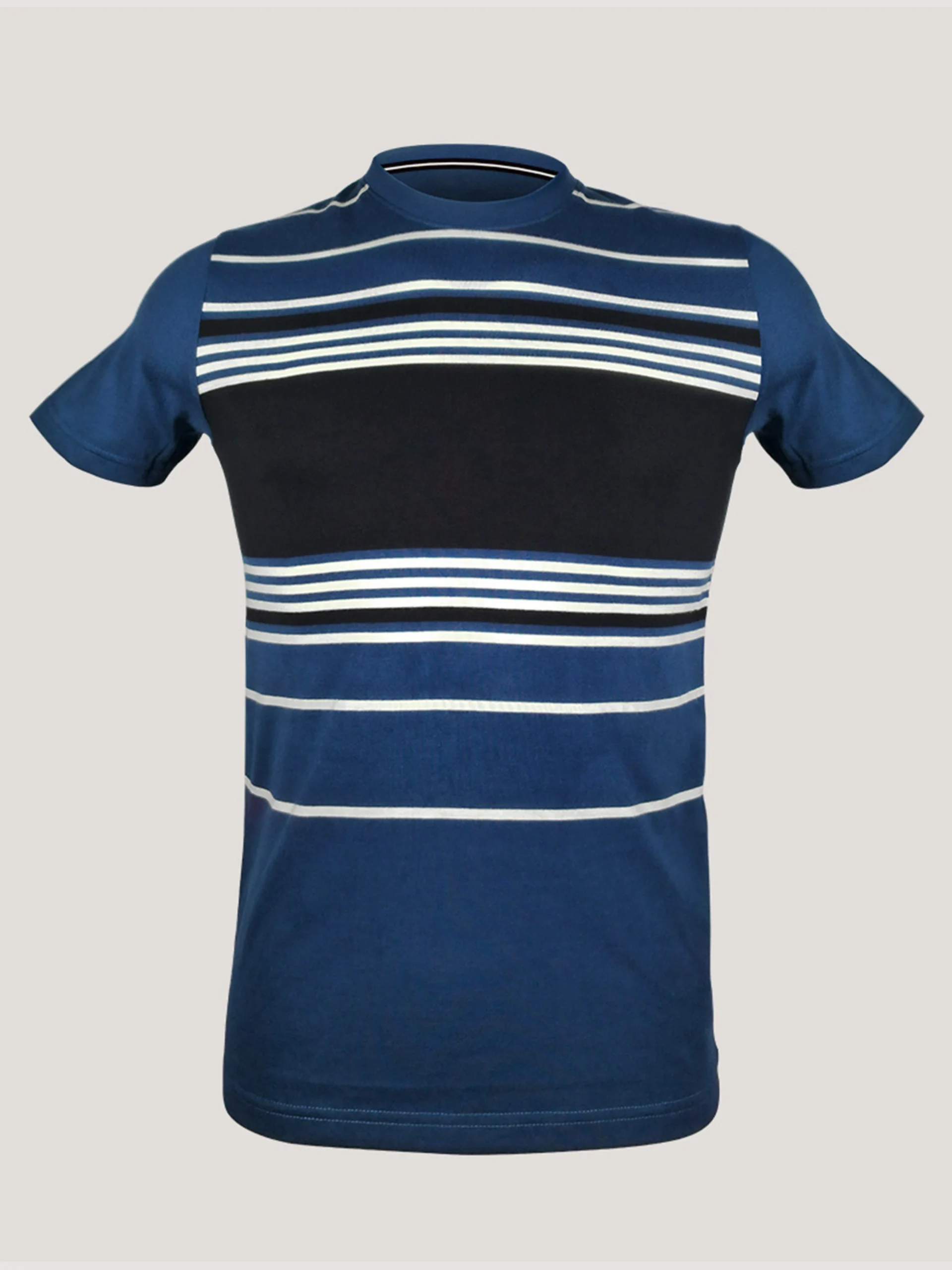 Midnight Blue and Black Striped Crew Neck T-Shirt – 1073