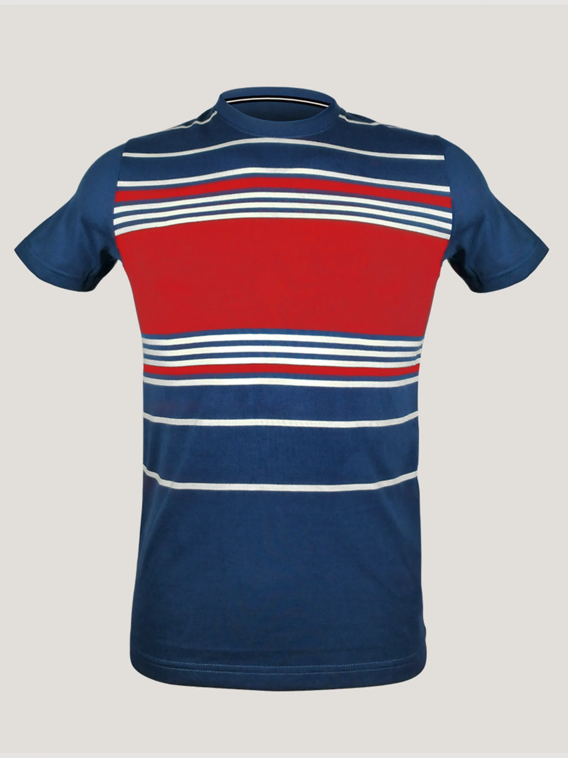 Midnight Blue and Scarlet Red Striped Crew Neck T-Shirt – 1073