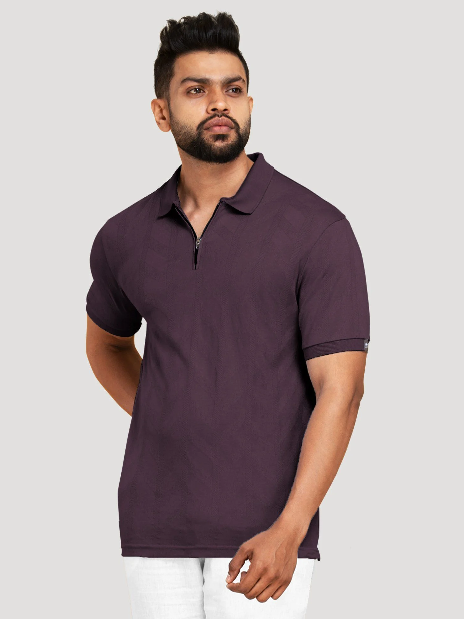 Velvet Grape Men’s Zip-Up Polo T Shirt – 126